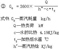 YTW浸没式汽水加热器有额定的蒸汽耗量指标,设计时根据实际所需要的蒸汽耗量,选用一台或多台加热器。实际所需蒸汽耗量可参照以下公式(①用于间断加热,②用于连续加热)确定: